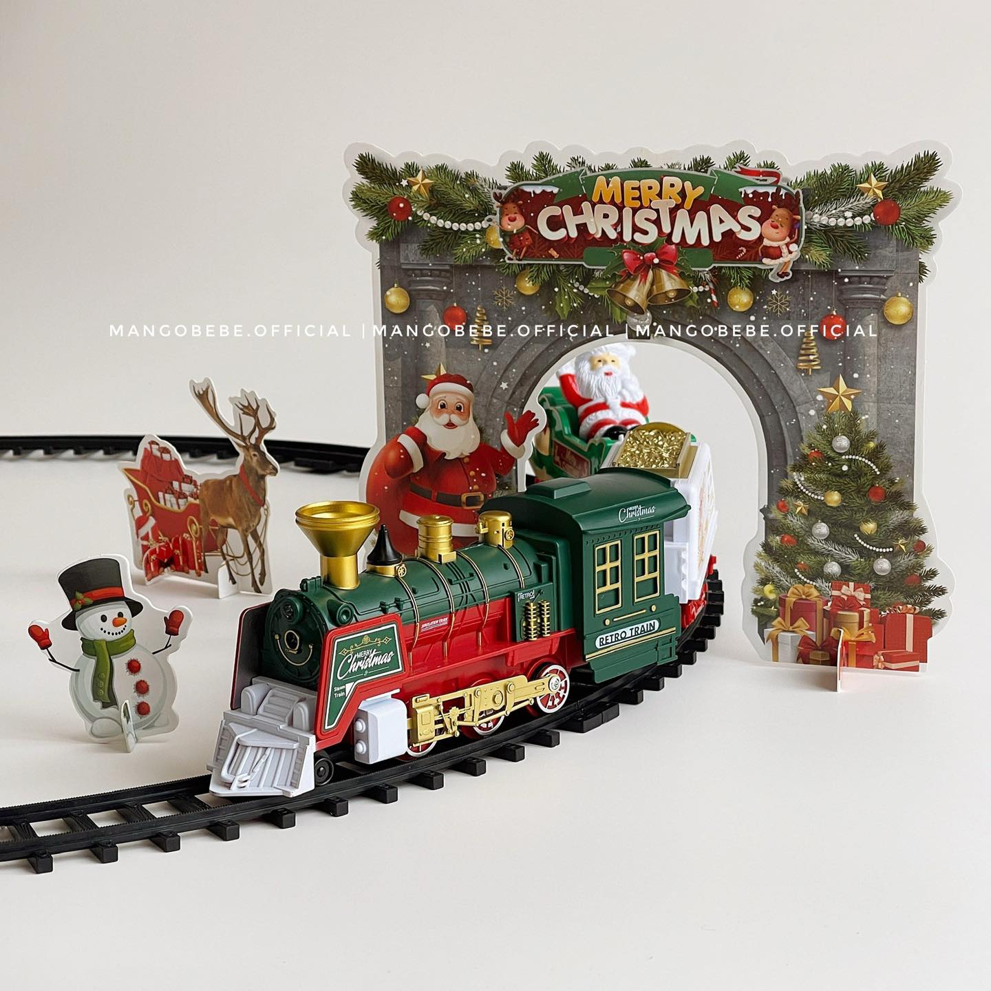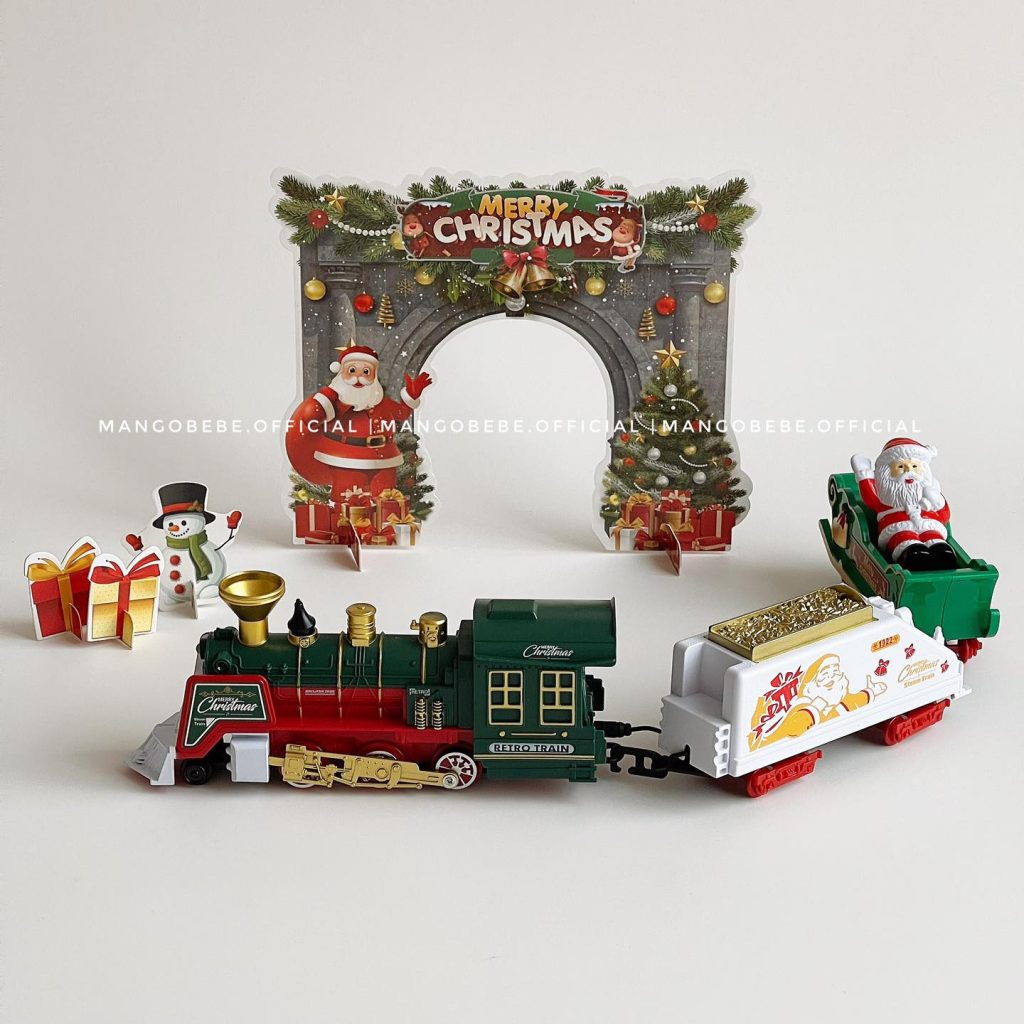 🎄Chỉ cần vài thao tác lắp ghép dễ dàng, bé sẽ có ngay đường ray siêu to khổng lồ (đường kính 78 cm) cùng với đoàn tàu chở ông già Noel đi phát quà Giáng Sinh.