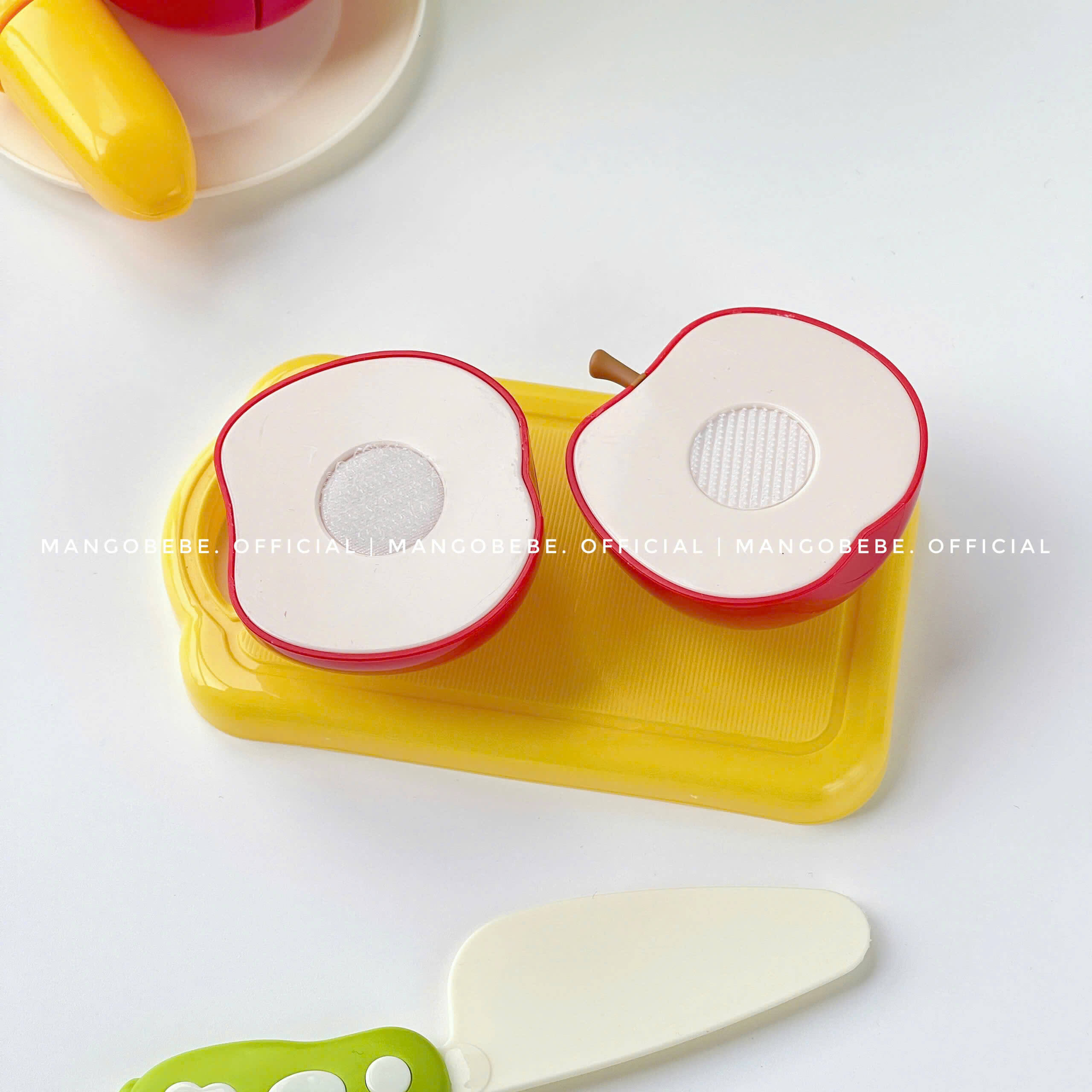 Khi bé cắt trái cây phát ra âm thanh tách vui tai, tạo cảm giác chân thực khi bé chơi. Chất liệu velcro bền bỉ cho bé thoải mái cắt, tháo, dán, chơi đi chơi lại vẫn như mới nha.