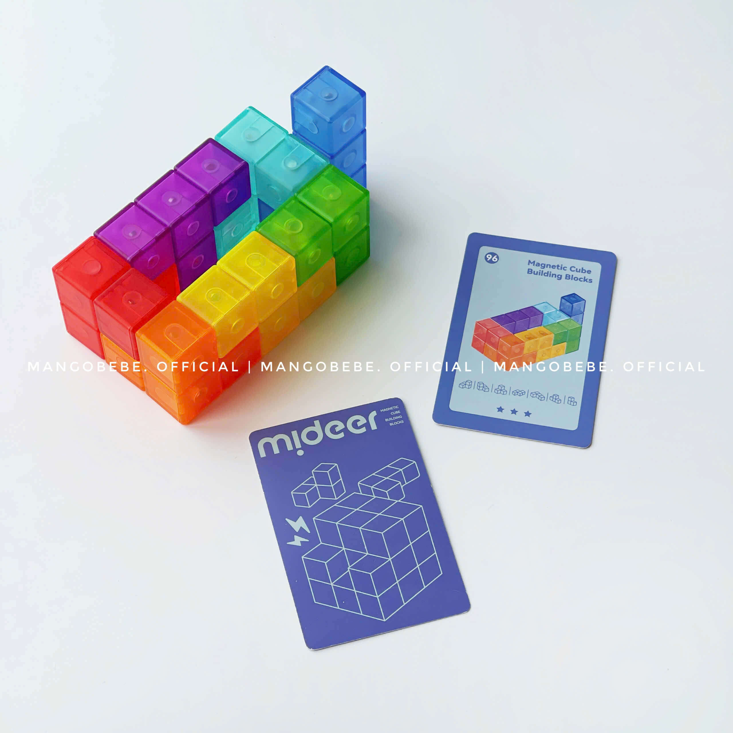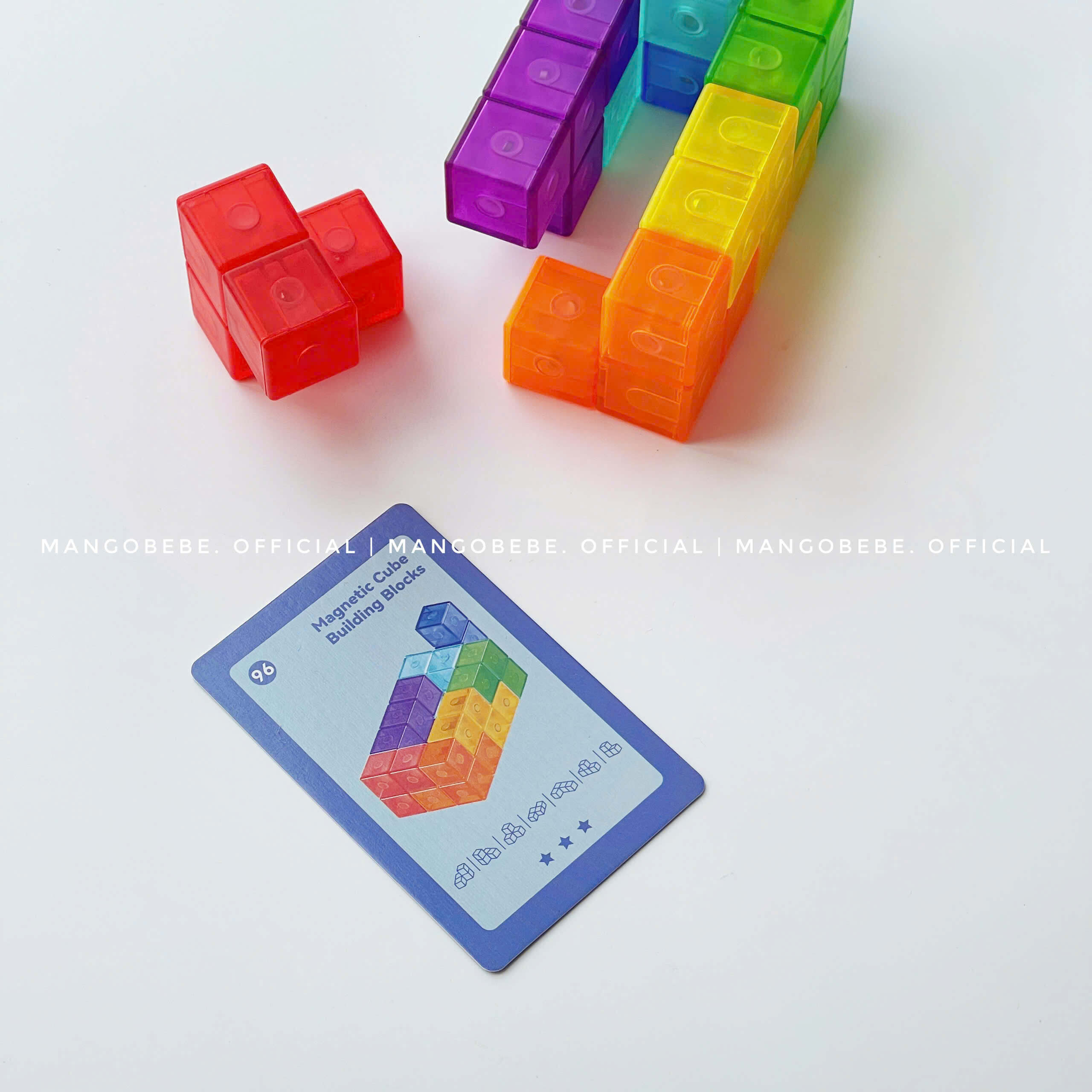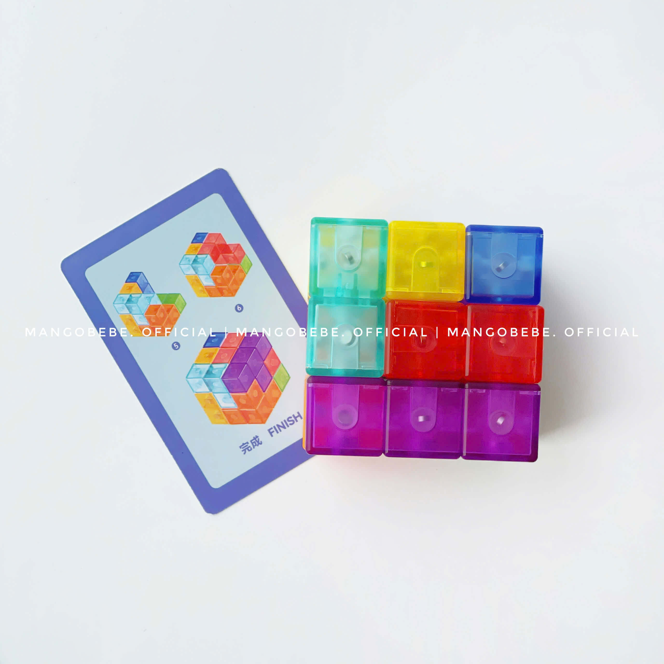 Set bao gồm 7 khối xếp hình, 54 thẻ thử thách