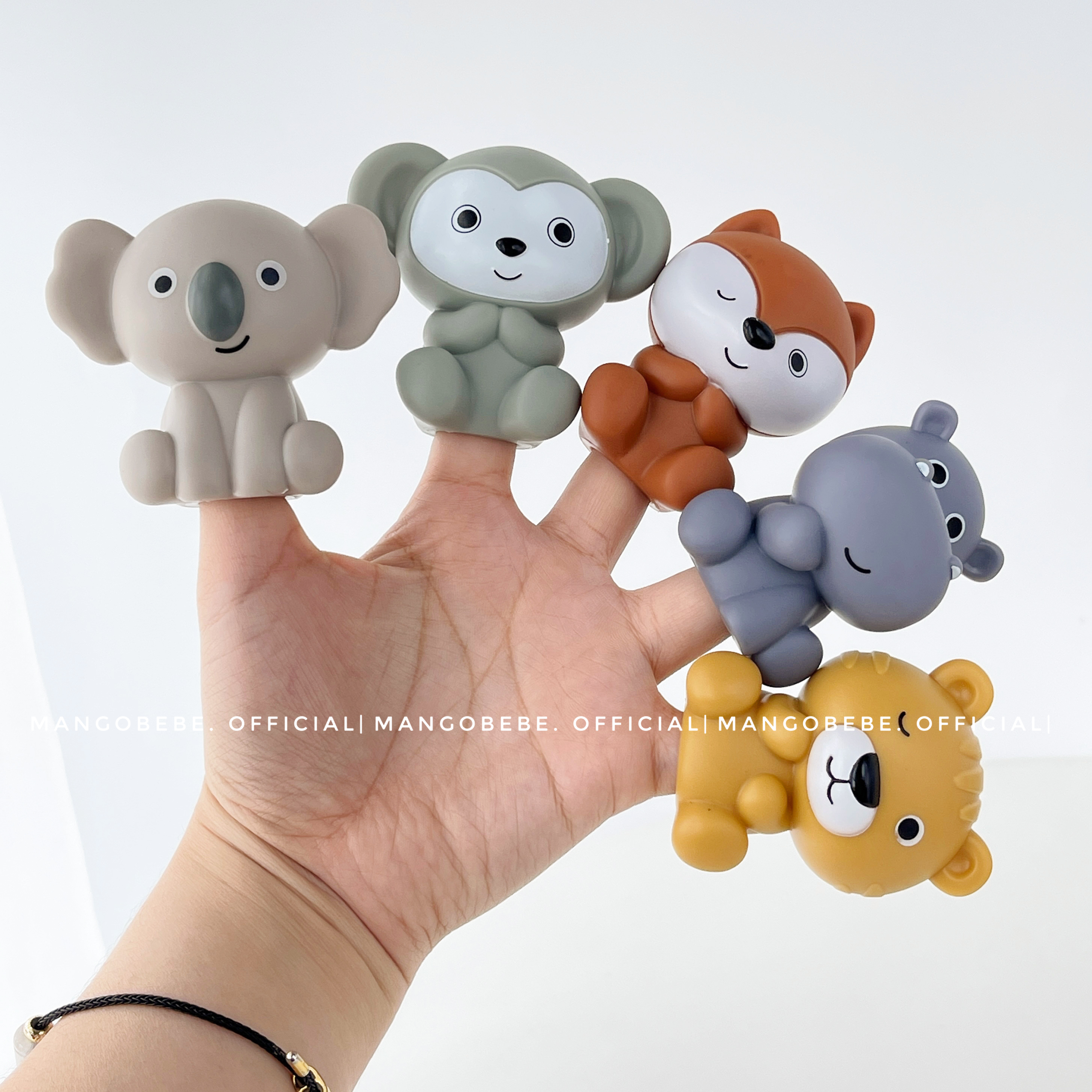 Các bạn động vật được làm bằng chất liệu cao su mềm mại, vừa là rối tay, vừa là đồ chơi nước, cực đa năng lun nè. Được làm từ chất liệu an toàn, tone màu Bắc Âu tuyệt đẹp, làm quà tặng quá xịn xò mom nha!