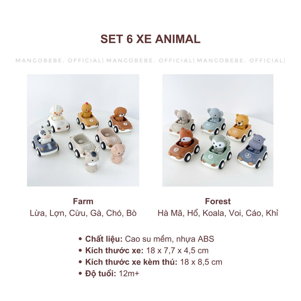 Set gồm 6 xe, 6 bạn động vật
